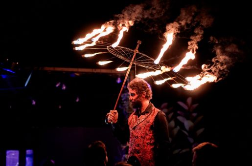 Tra trampolieri, giocolieri, fuoco, ballerini e performer itineranti, l’evento guida gli ospiti in un’esperienza immersiva fra stupore e mistero.